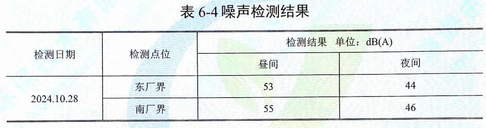 噪声源主要是压缩机、泵等,目前已采取了加固基础、厂房隔音等降噪措施,执行标准为《工业企业厂界环境噪声排放标准》GB12348-2008表1,昼间和夜间排放限值分别为65dB(A)和55dB(A)。2024年第四季度废气排放检测情况如下表: